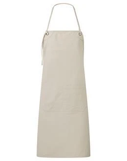 Tato zástěra inspirovaná řemeslným uměním je navržena tak, aby ji bylo možné nosit s laclem nebo jako pasovou zástěru. Zakulacené okraje vytvářejí jemné linie, zatímco kovová očka dodávají industriální šmrnc. Celkovou výšku lze upravit uzlovým krčním páskem a vaše nezbytnosti si můžete uložit do dvojité kapsy uprostřed. Těžká plátěná tkanina je odolná a působí luxusně, což z této zástěry činí ideální volbu pro jakékoliv místo, kde se vášnivě věnují svému řemeslu.