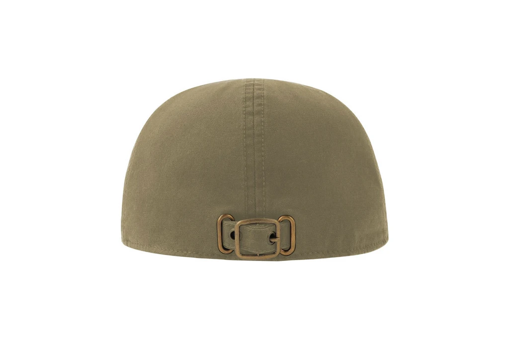 Retro styl vyrobený ze směsi recyklovaného a organického bavlněného plátna, s měkkou korunkou, zapínáním na přezku a středním kšiltem.