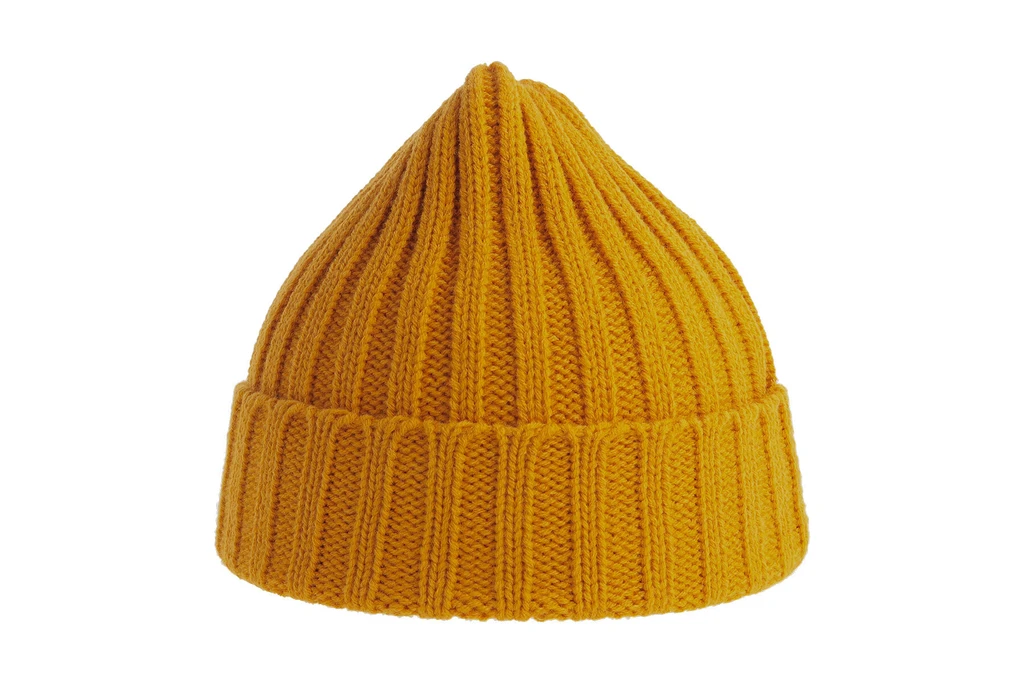 Čepice, kterou musíte mít, napůl recyklovaná, napůl akrylová. Udržitelnost SHORE odpovídá trendu 90. let s velkým žebrovým úpletem a silnou osobností, která připomíná vintage rybářský styl.