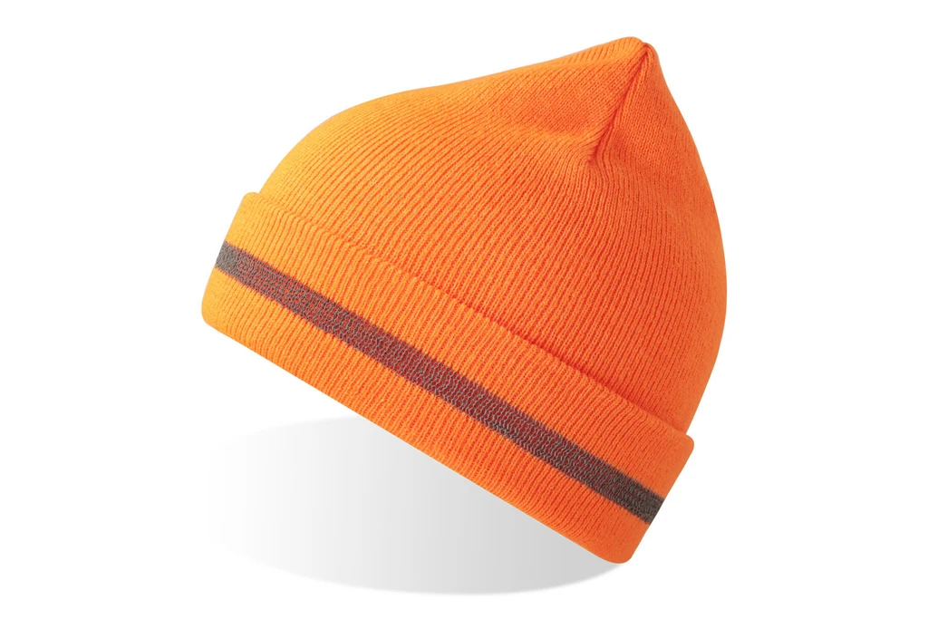 Teplá akrylová pletená čepice s reflexním stříbrným páskem z příze.