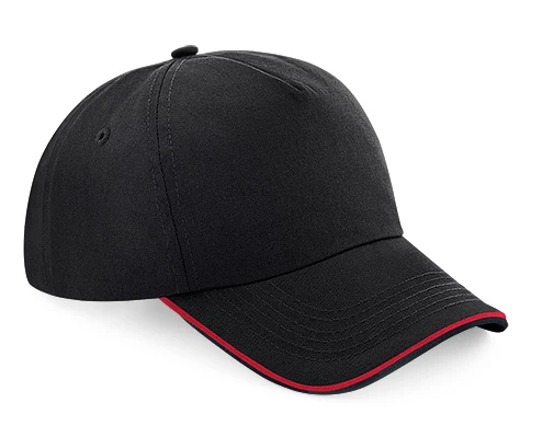 Štítek TearAway pro snadnou změnu značky, strukturovaný přední panel, design s 5 panely, předem zakřivený kšilt, kontrastní barvou lemovaný kšilt, prošitá ventilační očka, perfektní pro potisk a vyšívání, samolepicí pásek s troj kluznou sponou
