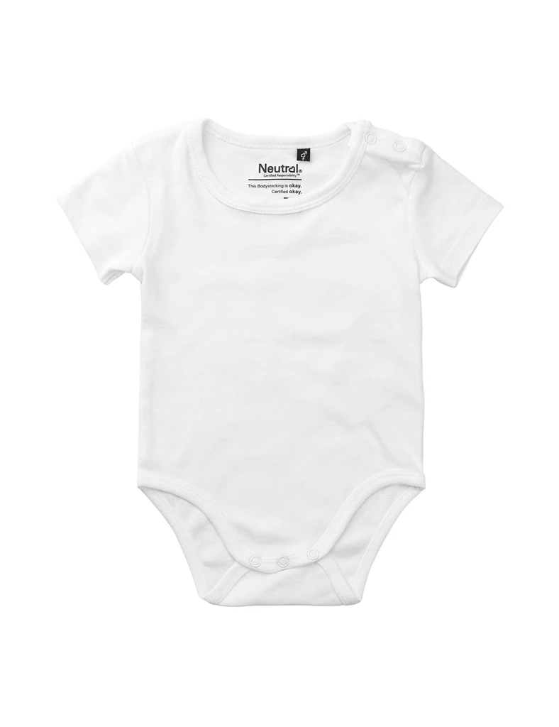 Materiál: 100% bio bavlna "Fairtrade Cotton", 1x1 žebrovaný úplet; Gramáž: 220 g/m²; Pružný úplet, krátké vsazené rukávy. Zapínání na patentky na rameni a v rozkroku. Žebrované lemování kolem krku a otvoru pro nohy; Certifikáty: OEKO-TEX® STANDARD 100, 100% CERTIFIED ORGANIC COTTON, FAIR WEAR, EU ECOLABEL, SA8000, NEUTRAL® RESPONSIBILITY