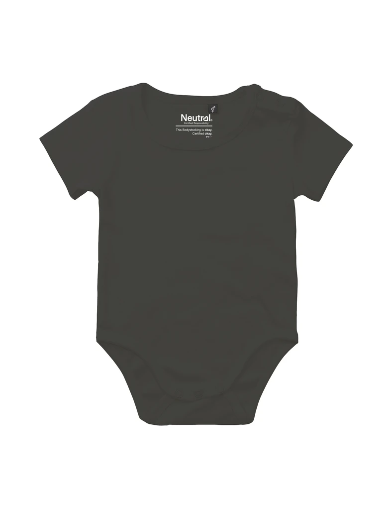 Materiál: 100% bio bavlna "Fairtrade Cotton", 1x1 žebrovaný úplet; Gramáž: 220 g/m²; Pružný úplet, krátké vsazené rukávy. Zapínání na patentky na rameni a v rozkroku. Žebrované lemování kolem krku a otvoru pro nohy; Certifikáty: OEKO-TEX® STANDARD 100, 100% CERTIFIED ORGANIC COTTON, FAIR WEAR, EU ECOLABEL, SA8000, NEUTRAL® RESPONSIBILITY
