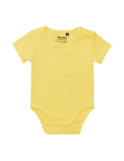 Materiál: 100% bio bavlna "Fairtrade Cotton", 1x1 žebrovaný úplet; Gramáž: 220 g/m²; Pružný úplet, krátké vsazené rukávy. Zapínání na patentky na rameni a v rozkroku. Žebrované lemování kolem krku a otvoru pro nohy; Certifikáty: OEKO-TEX® STANDARD 100, 100% CERTIFIED ORGANIC COTTON, FAIR WEAR, EU ECOLABEL, SA8000, NEUTRAL® RESPONSIBILITY