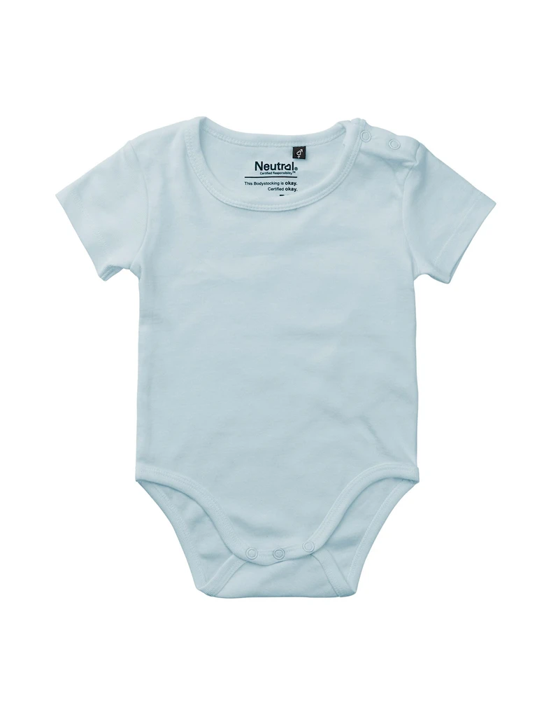 Materiál: 100% bio bavlna "Fairtrade Cotton", 1x1 žebrovaný úplet; Gramáž: 220 g/m²; Pružný úplet, krátké vsazené rukávy. Zapínání na patentky na rameni a v rozkroku. Žebrované lemování kolem krku a otvoru pro nohy; Certifikáty: OEKO-TEX® STANDARD 100, 100% CERTIFIED ORGANIC COTTON, FAIR WEAR, EU ECOLABEL, SA8000, NEUTRAL® RESPONSIBILITY