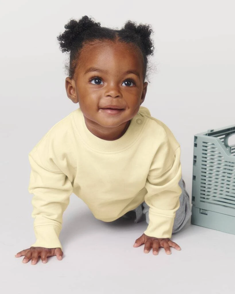 Materiál: 85% Organická, prstencová, česaná bavlna, 15% recyklovaný polyester; Vsazený rukáv, 1x1 žebrování u výstřihu, lem rukávu a spodní lem, ramenní léga s 1 patentkem v barvě a 1 skrytým patentkem pro snadné oblékání, vnitřní páska za krkem z jednolícního žerzeje, půlměsíc na zadní straně krku z vlastní tkaniny, jednojehlový vrchní steh na krčním límci, lemu rukávu a spodním lemu dvoujehlovým vrchním stehem; Certifikáty: GOTS - Global organic textile standard, Fair wear, STANDARD 100 by OEKO-TEX®, Peta - Approved VEGAN
