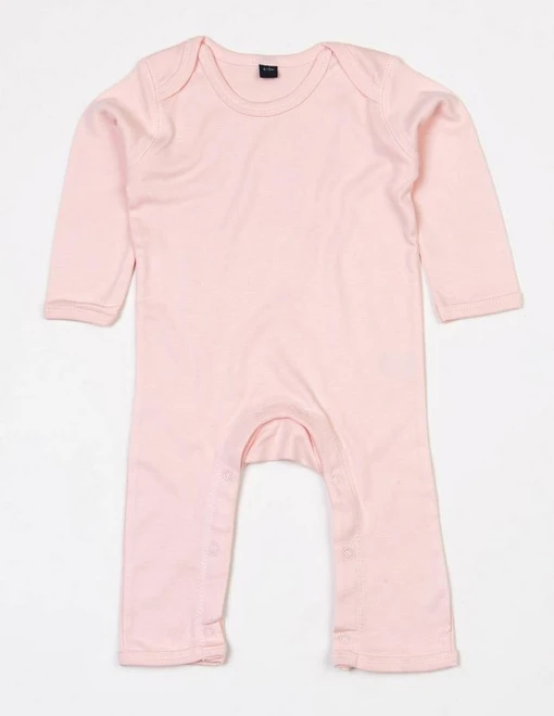 Kombinéza amerického střihu, měkký, pružný interlock, žebrovaný lem u krku, rukávů a manžet u kotníků, ozdobné prošití na ramenních a rukávových švech a na nohavicích, na vnitřní straně nohavic zapínání na patentky bez příměsi niklu.