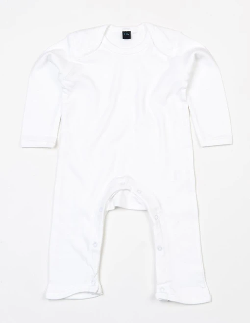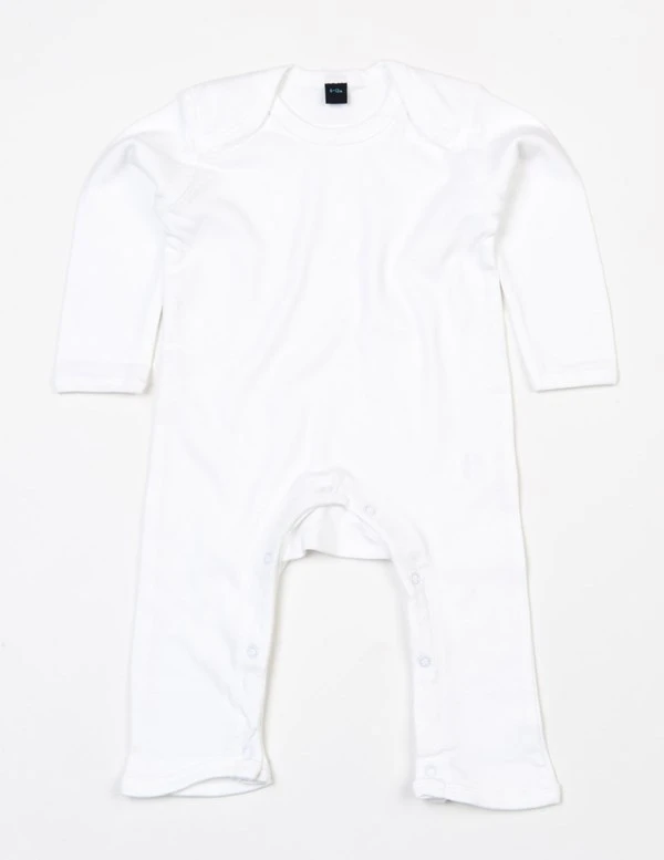 Kombinéza amerického střihu, měkký, pružný interlock, žebrovaný lem u krku, rukávů a manžet u kotníků, ozdobné prošití na ramenních a rukávových švech a na nohavicích, na vnitřní straně nohavic zapínání na patentky bez příměsi niklu.