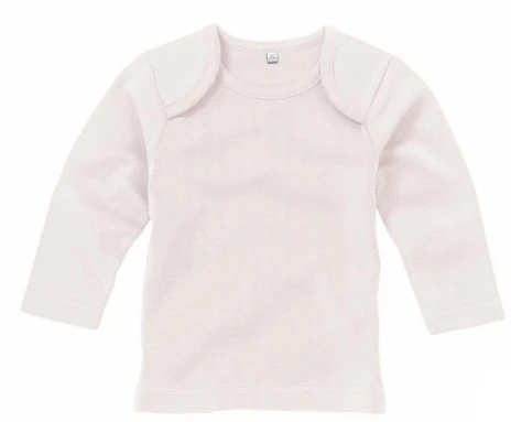 Nebělený přirozený vzhled, interlock, dlouhý rukáv a výstřih v “americkém stylu”, našité lemování výstřihu a zakončení rukávů, boční švy, dolní lem šitý dvojitou nití.
