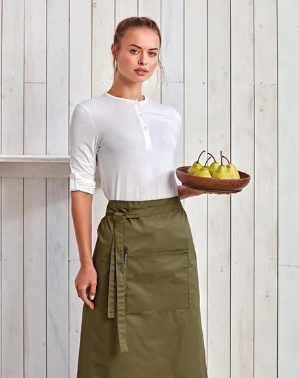 Dlouhá barová zástěra nabízející nositeli maximální krytí. Tato zástěra s velkou středovou kapsou pro tablet a kombinovanou kapsou na pero je k dispozici ve 24 barvách a je součástí „Colours Collection“.