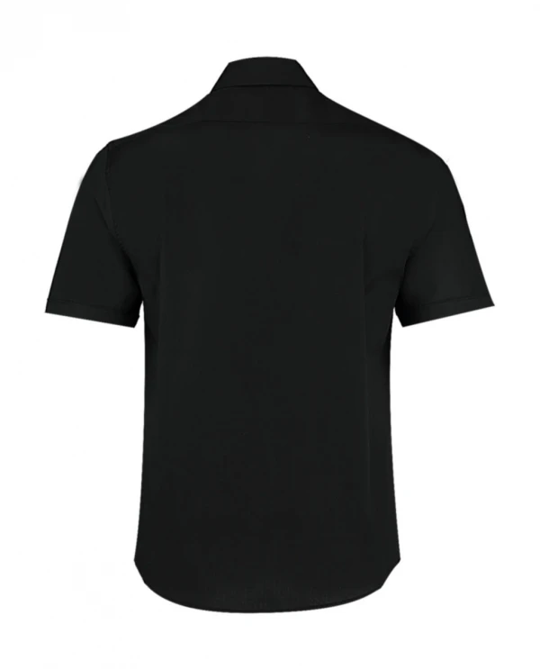 Lehce zesílený límec, sedlo na zádech, knoflíky v barvě košile, otočné manžety, dvojitý šev na rukávech a na bocích, zaoblený spodní lem.