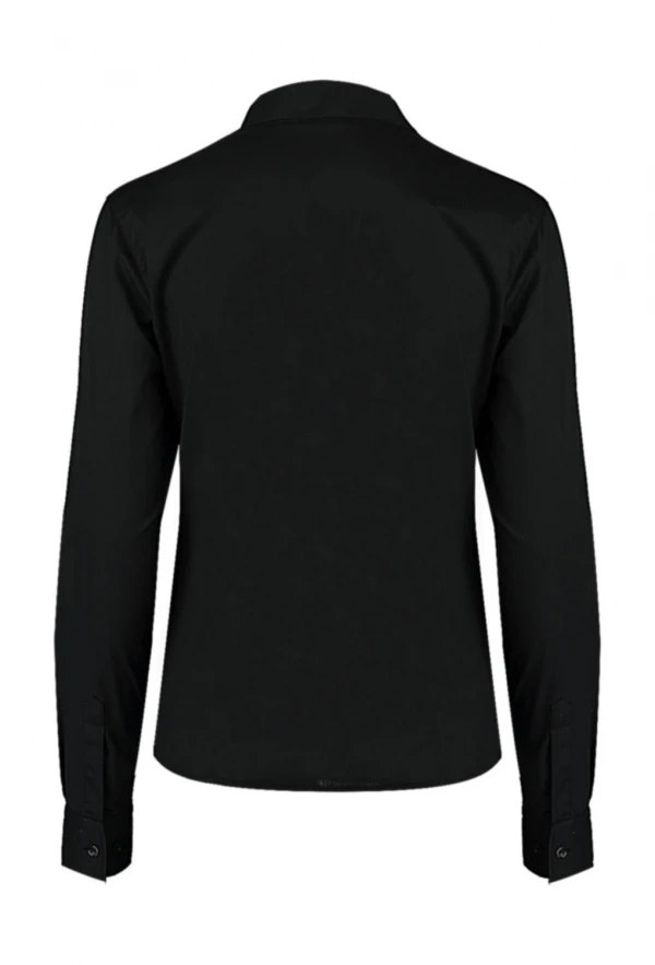 Halenka v asijském stylu s dlouhým rukávem, malý stojáček, knoflíky v barvě halenky zakryté légou (je vidět pouze první shora), vypasovaný střih, nastavitelné manžety, malé rozparky na bocích, lehce zaoblený spodní lem.