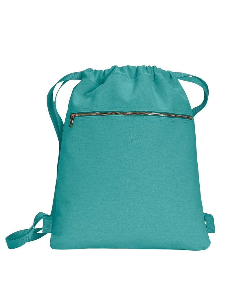 Tkané ramenní popruhy, hlavní kapsa na stahovací plochou šňůrku, přední kapsa s mosazným zipem.