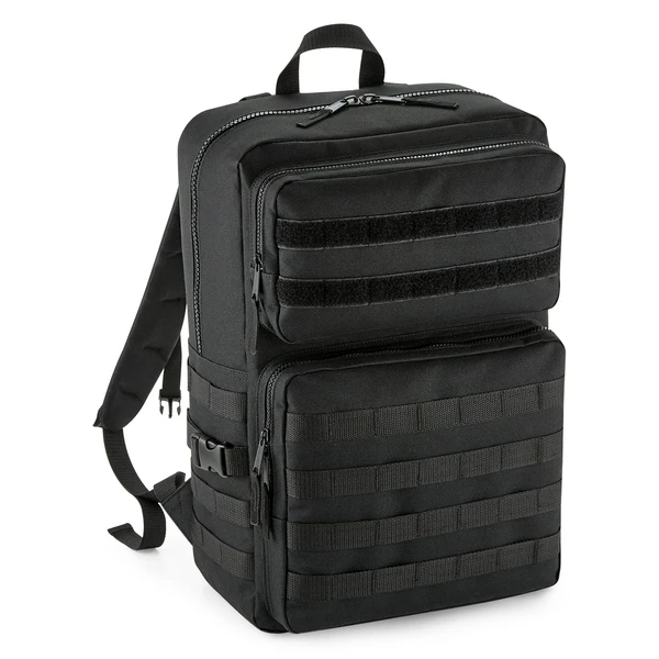 Materiál: 600D Polyester; Rozměry: 30 x 45 x 22 cm; Kapacita: 25 litrů; Štítek TearAway pro snadný rebranding, design inspirovaný armádou, dvojitý popruh RIP-Strip ™ MOLLE, dvě velké přední kapsy na zip, hlavní přihrádka na zip, vnitřní protiskluzová kapsa, držadlo, polstrovaný zadní panel, kompresní popruhy, polstrované nastavitelné ramenní popruhy, kompatibilní s MOLLE Utility Patch, kompatibilní s Modulr ™ Multipockets BG241 a BG242