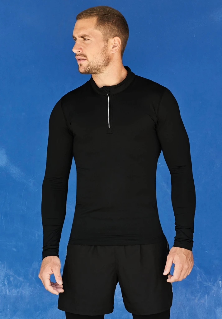 Rychleschnoucí materiál. Zapínání na zip do 1/4. Reflexní detail kolem zipu.