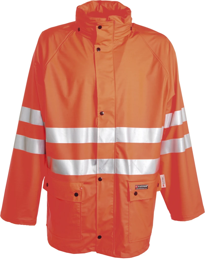 Vysoká viditelnost, 3M reflexní pruhy, vhodná do deště, raglánové rukávy, nylonový zip po celé délce, přes zip klopa na cvočky, kapuci lze schovat do límce, stahovací šňůrka v pase, rovně střižené rukávy, vnitřní elastické manžety, 2 kapsy s klopou, tepelně lepené pruhy a švy