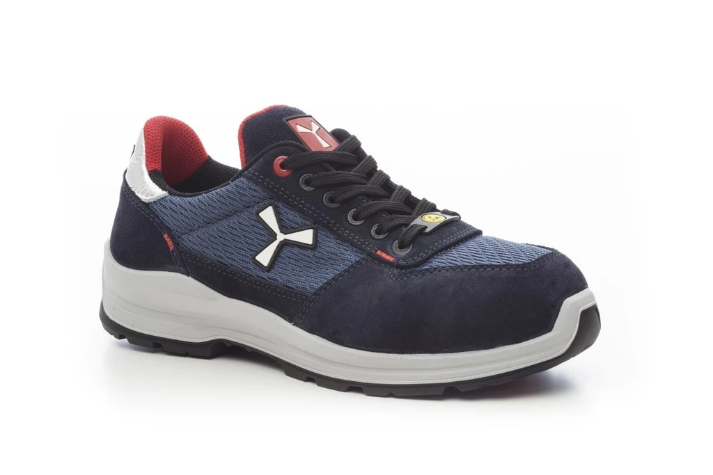 Nízká bezpečnostní obuv dámská, svršek vyroben z voděodolné štípenky s vložkami z prodyšné technické tkaniny, vnitřní prodyšná podšívka (po celém vnitřním povrchu) odolná proti oděru, 6+6 nekovových oček, reflexní vložka v chrániči podpatku, hliníková tužinka ve špičce litá pod tlakem, vyjímatelná ortopedická vložka Ortholite X40 016 ESD, certifikovaná stélka z textilní fólie proti propíchnutí, proti torzní výztuž shank, výztuž pod špičkou ve tvaru koňské podkovy, mezipodešev z ultralehkého polyuretanu ESD, tlumič nárazů MASTER BALANCE z polyetheru PU o vysoké houževnatosti a vyvážené hustotě, podrážka XTRAIL GRIP z TPU ESD s chráničem podpatku a chráničem špičky