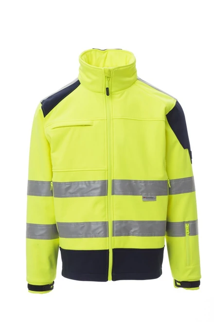WP/MM 8000 MVP/GR 5000 Pánská softshellová pracovní bunda, dvoubarevné provedení bunda s reflexními pruhy 3M, vysoká viditelnost, ergonomické zpracování, zapínání na dlouhý SBS zip, stahovací pásky na suchý zip v oblasti zápěstí, dvě postranní kapsy na zip, jedna kapsa na hrudi, odnímatelné a zavírací pružné pouzdro na jmenovku a jedna kapsa na levém rukávu