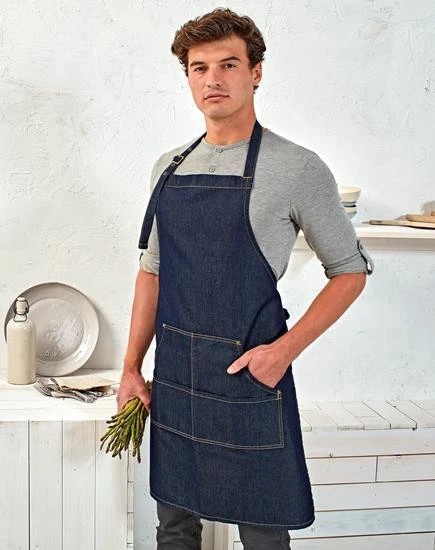 Tato džínová zástěra s náprsenkou je moderním řešením pro bary a restaurace, které hledají něco trochu jiného, než je uniforma pro zaměstnance. Spona na nákrčníku umožňuje uživateli upravit délku zástěry a vpředu jsou čtyři kontrastně prošívané kapsy, které jsou ideální pro přenášení platebních terminálů a objednávkových bloků. Samostatné kravaty lze úhledně zapnout vzadu nebo jsou dostatečně dlouhé, aby se zdvojnásobily kolem pasu a zavazovaly vepředu.
