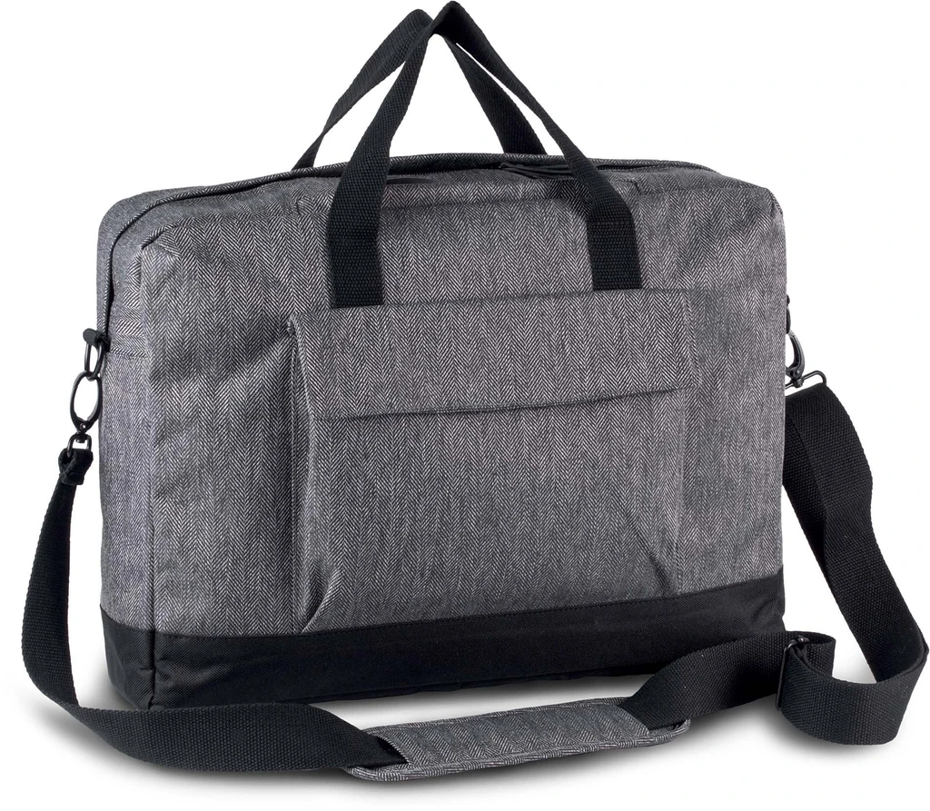 Polstrovaná přihrádka na notebook do velikosti 15", polstrovaná přihrádka na tablet na zip, 2 vnitřní kapsy, 1 kapsa na mobilní telefon na zip, 1 přední kapsa s klopou na cvoček, odnímatelný ramenní popruh, lze připevnit na kufr.