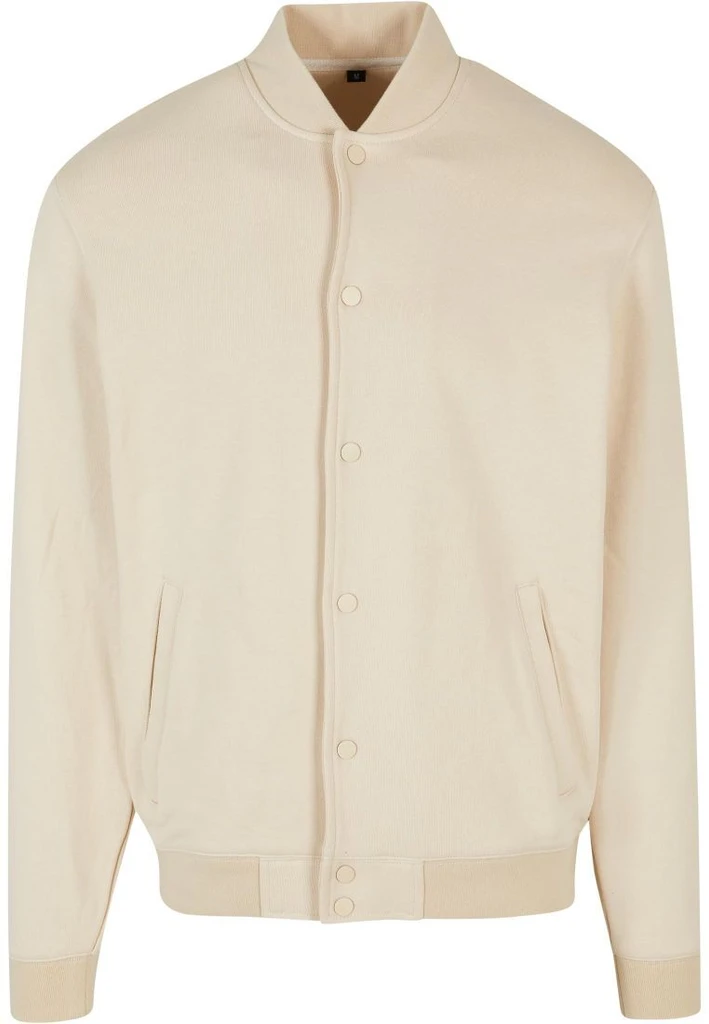 Nápadná a sportovní bunda pro muže nabízí oblíbené klasické prvky: knoflíková léga, žebrovaný stojáček a také boční kapsy. Široké manžety na rukávech a spodním lemu klidně doplňují mužný vzhled. Univerzitní bunda má pravidelný střih a je vyrobena z těžké bavlněné látky. Základní design je ideální pro další zušlechtění pomocí flockového tisku nebo sítotisku nebo pomocí výšivek.