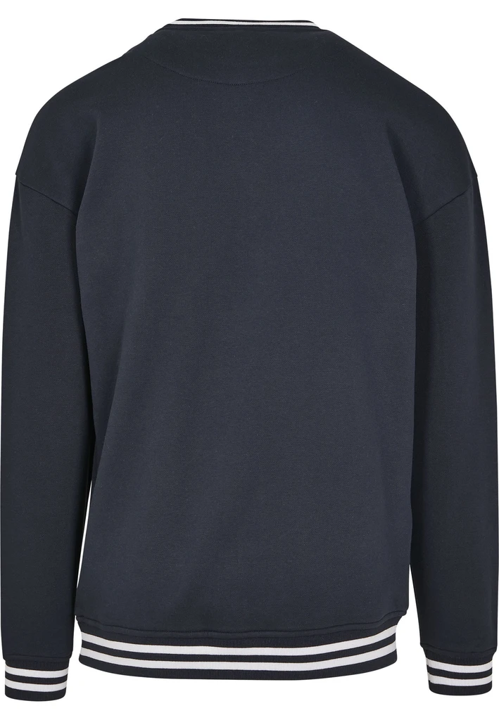 Složení: 65% Bavlna / 35% Polyester; 300 g/m2; překrývající se ramena, kulatý výstřih, pruhované manžety na rukávech, spodním lemu a výstřihu, vnitřní zdrsněná teplá látka, půlměsícový výstřih, žebrované manžety v univerzitním stylu