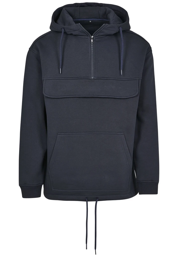 Složení: 65% Bavlna / 35% Polyester; 300 g/m²; Vnitřní zdrsněná tkanina, žebrované manžety na rukávech, spodní lem se stahovací šňůrkou, náprsní kapsa na suchý zip a skrytý zip, plochá klokaní kapsa s otvory pro vnější látkové kapsy, kapuce se stahovacími šňůrkami