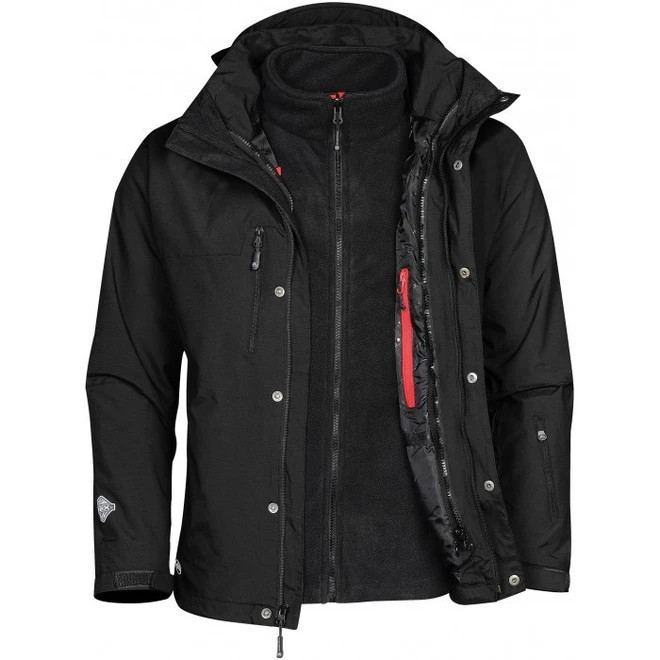 Odepínací podšívka, vnitřní síťka udržující teplo, odepínací a nastavitelná kapuce, zip po celé délce s vnitřní légou proti větru, dvě přední kapsy zapínané na zip, vnitřní kapsa na elektrická zařízení, zateplené kapsy, nastavitelný dolní okraj a manžety, podlepené švy, voděodolná (2000 mm), prodyšná (1000 g/m²/24h), snadný přístup pro provedení dekorování.