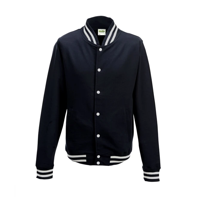 Pletený límec, manžety a dolní lem - pruhovaný detail, zapínání na bílé cvočky, dvě boční kapsy s vývodem na sluchátka, výztužná páska za krkem, jednoduchá změna značky, ideální povrch pro potisk, unisex.