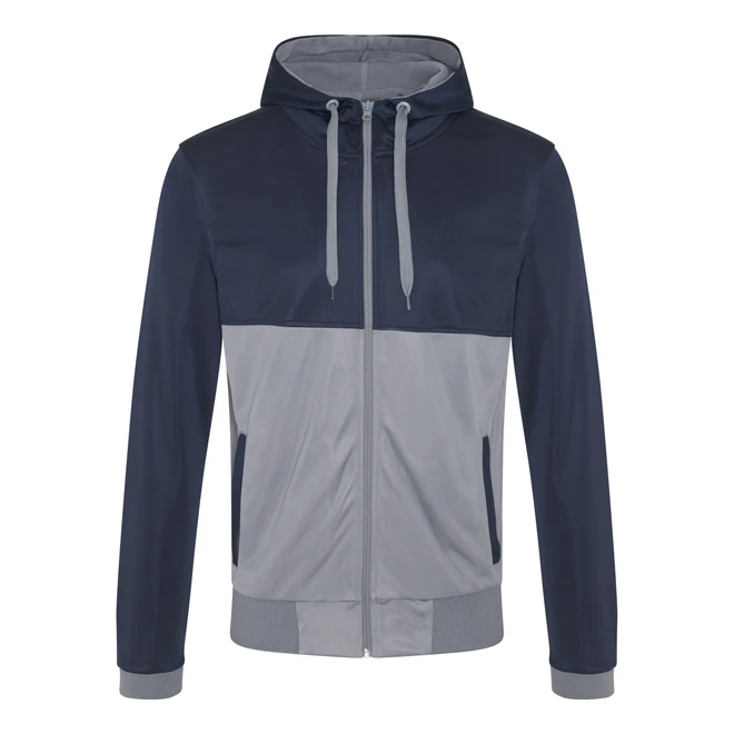Mnoho barevně kontrastních vsadek, sportovní pohodlný střih, velký prostor pro potisk (vpředu i vzadu), podšívka kapuce ze síťoviny, vsazené rukávy, žebrované manžety a spodní lem, zip po celé délce, přední kapsy, snadná změna značky.