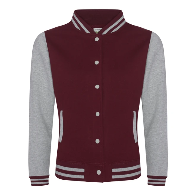 Dámský střih, pletený límec, manžety a dolní lem - pruhovaný detail, kontrastní rukávy, zapínání na cvočky v kontrastní barvě, lemované boční kapsy, jednoduchá změna značky, ideální povrch pro potisk.