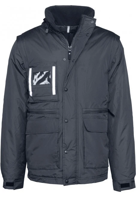 Zip po celé délce, odnímatelné rukávy, 5 funkčních předních kapes (1 kapsa s průhledným pouzdrem na jmenovku), 1 vnitřní kapsa, reflexní lemy na hrudi a zádech, výztuhy na ramenou, boční zip pro jednodušší pohyb, stahovací šňůrka v pase. Průměrná hmotnost vel.L: 1480 g.