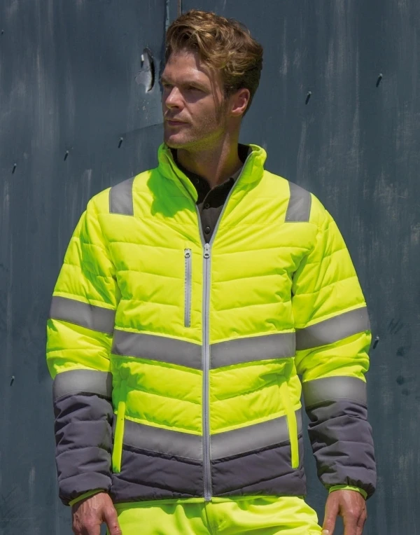Měkký povrch, lehká a teplá, stojací límec, poutko na zavěšení, YKK zip po celé délce, vnitřní, náprsní a postranní kapsy na zip, konce rukávů odolné proti špíně, náplety na manžetách rukávů a spodním lemu, nízký pas, vhodné pro výšivku, 50 mm široké našité reflexní pruhy, ISO EN2047:2013+A1, třída 2; RIS-3279-TOM (only Fluo Orange/Grey).