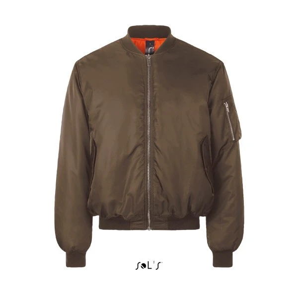 Zapínání na zip, žebrování kolem límce, manžet a spodní části, 2 kapsy s klopou na cvoček, 1 kapsa na zip na rukávu, kontrastní oranžová podšívka