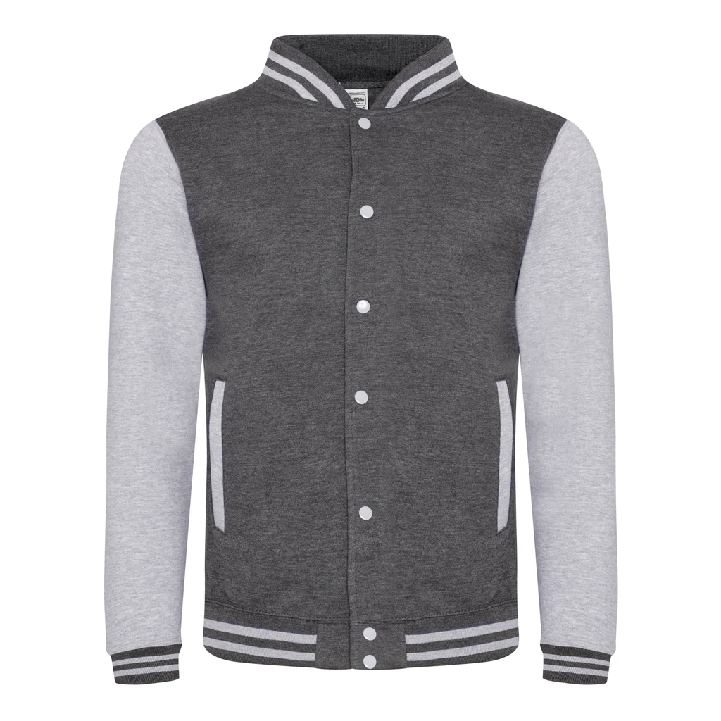 Pletený límec, manžety a dolní lem - pruhovaný detail, kontrastní rukávy, zapínání na cvočky v kontrastní barvě, dvě boční kapsy s vývodem na sluchátka, výztužná páska za krkem, jednoduchá změna značky, ideální povrch pro potisk.