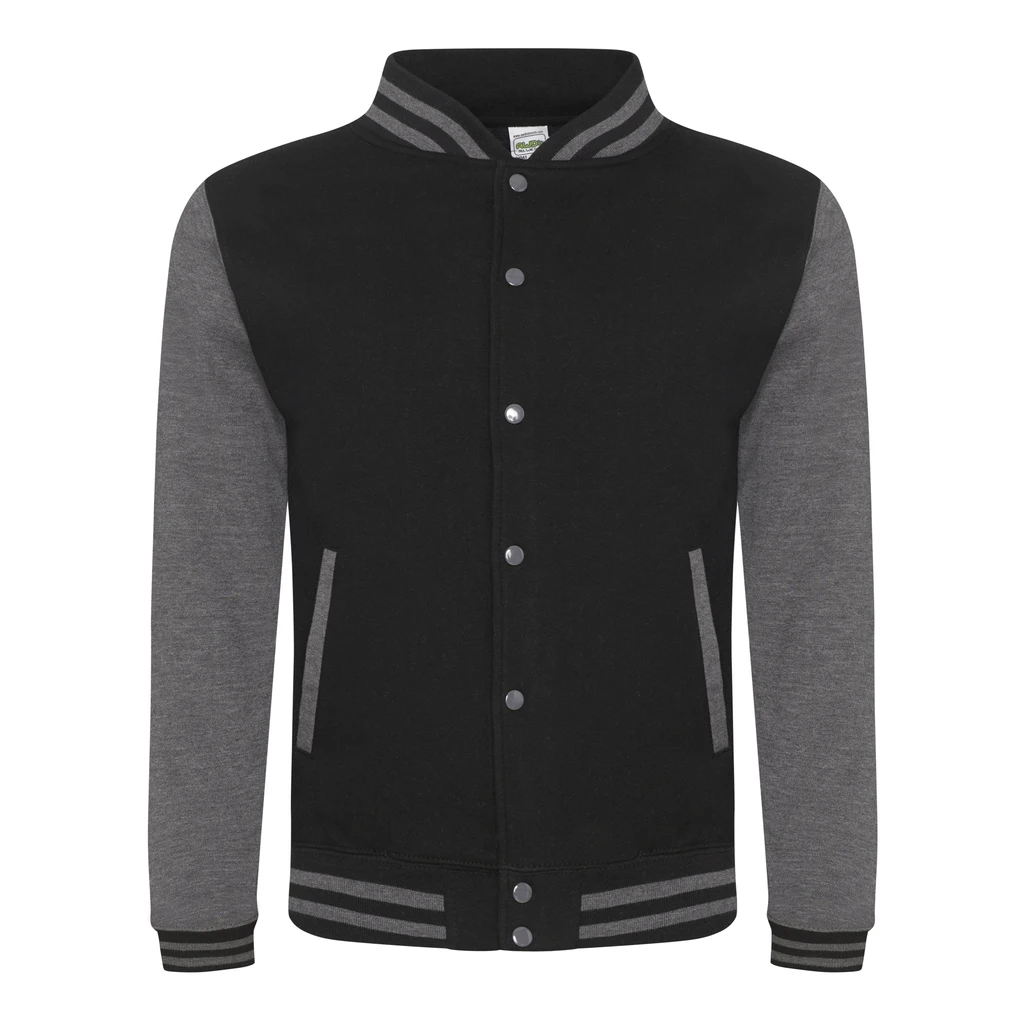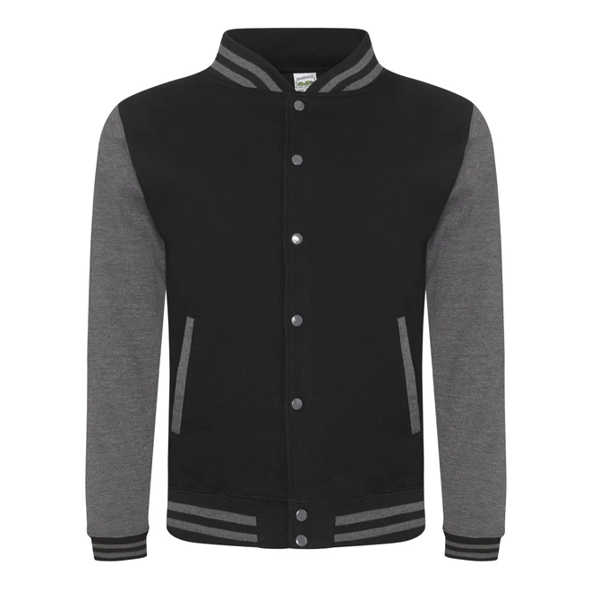 Pletený límec, manžety a dolní lem - pruhovaný detail, kontrastní rukávy, zapínání na cvočky v kontrastní barvě, dvě boční kapsy s vývodem na sluchátka, výztužná páska za krkem, jednoduchá změna značky, ideální povrch pro potisk.