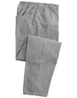 Tradiční kuchařské kalhoty dostupné ve dvou oblíbených barevných provedeních. Pohodlný nazouvací styl pro snadné nošení s elastickým pasem a zapínáním na zip. Na zadní straně je užitečná našitá kapsa.
