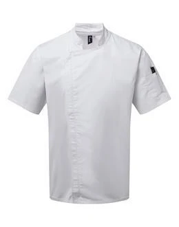 Snadno se oblékající kuchařský rondon se skrytým zapínáním na zip. Dva džínové styly mají panely v reverzní barvě pod paží a po stranách, přičemž bílá verze těží z prodyšného panelu ze síťoviny v podpaží. Stylizované s límcem a bočními větracími otvory pro typický styl, který lze vidět v mnoha kuchyňských prostředích.