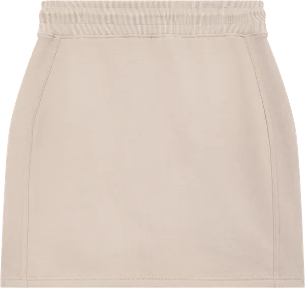 Sukně je navržena s žebrovaným elastickým pasem a stahovacími šňůrkami s kulatými koncovkami pro čistý, moderní vzhled. Má také jemný detail na bočním panelu, který zdůrazňuje tvar a zároveň zachovává minimalistickou estetiku.