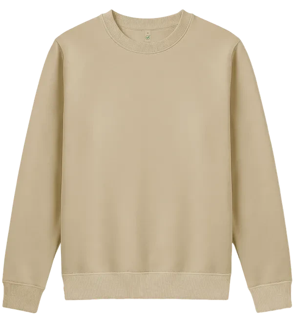 Je vyroben z pevného třívrstvého fleece s gramáží 300 g/m², který nabízí hladký a stabilní povrch ideální pro potisk, v kombinaci s prodyšnou, nečesanou vnitřní stranou vhodnou pro celoroční nošení. Ladící žebrování u výstřihu, manžet a lemu zvyšuje odolnost a pomáhá oděvu udržet si svůj tvar i po delším nošení.