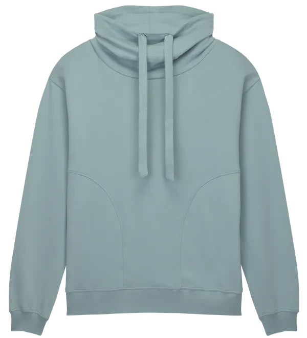 Je vyrobena z pevné organické bavlny o gramáži 300 g/m² a povrch látky je upraven tak, aby byl měkký a semišový, což zvyšuje pocit luxusu. Charakteristický rolák poskytuje větší teplo a zároveň zachovává strukturovaný, módní vzhled.