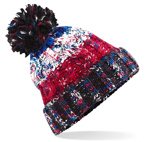 Štítek TearAway pro snadnou změnu značky, manžetový design pro optimální dekoraci, těžký kabelový úplet, luxusní termopásek pro extra teplo, luxusní bambule, výrazný design čtyřbarevných pruhů