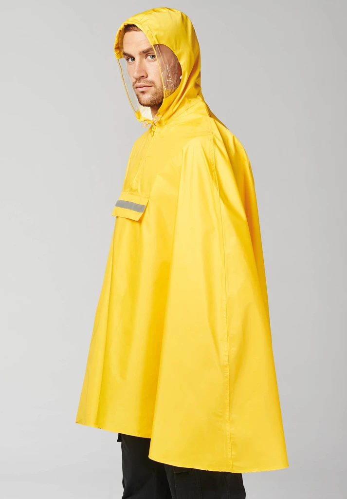 Nepromokavost až do 5000 mm. Zip do 1/4 délky. Podlepené švy. Kapuce s bočními bezpečnostními transparentními průzory. Vnitřní úchyty určené pro jízdu na kole. Reflexní proužky na přední i zadní kapse. Celou pláštěnku lze složit do klokanní kapsy.