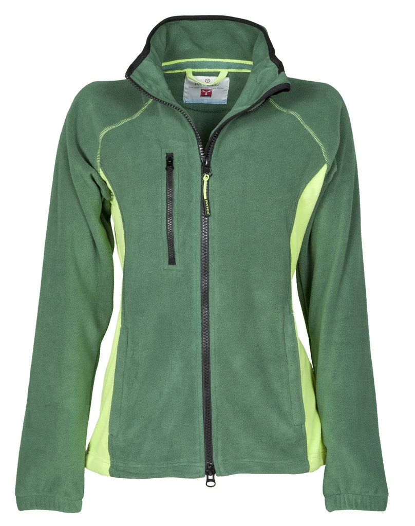 Černý plastový zip 8 mm široký, raglánové rukávy, stahovací šňůrka v pase, elastické manžety, 2 kapsy se skrytým zipem, 1 přední kapsa na hrudi, za krkem výztužná páska v kontrastní barvě, vyztužené švy