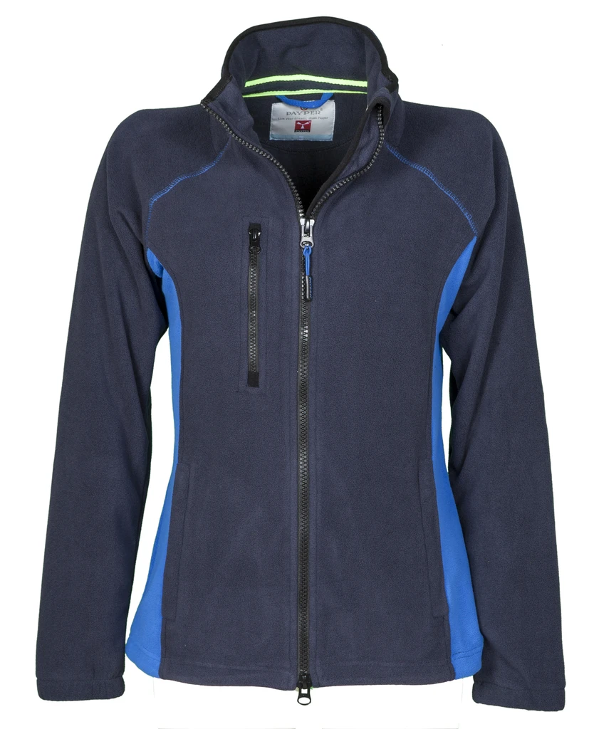 Černý plastový zip 8 mm široký, raglánové rukávy, stahovací šňůrka v pase, elastické manžety, 2 kapsy se skrytým zipem, 1 přední kapsa na hrudi, za krkem výztužná páska v kontrastní barvě, vyztužené švy