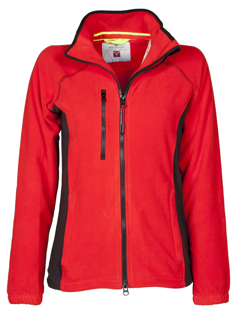 Černý plastový zip 8 mm široký, raglánové rukávy, stahovací šňůrka v pase, elastické manžety, 2 kapsy se skrytým zipem, 1 přední kapsa na hrudi, za krkem výztužná páska v kontrastní barvě, vyztužené švy