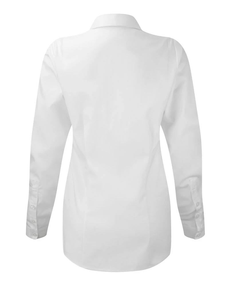 Gramáž: 130 g/m² (White: 125 g/m²); Materiál: 84% bavlna, 16% polyester; Dámská přiléhavá halenka ze směsového materiálu; Klasický materiál, elegantní, moderní límec, dlouhé rukávy, úzká léga, stylové úzké manžety, záševky vpředu a vzadu, vypasovaná, snadné ošetřování. Certifikáty: STANDARD 100 by OEKO-TEX®; WRAP