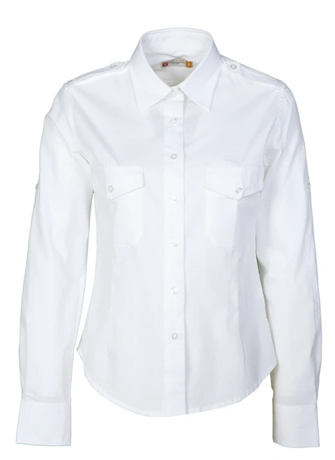 Mírně zeštíhlená, záševky vpředu a vzadu, italský límeček, manžety s 2 knoflíky a knoflíkovou dírkou, oboustranně prošitá léga s barevně sladěnými knoflíky a červenými knoflíkovými dírkami (mimo bílé provedení), tvarované sedlo vpředu (mimo bílé provedení), nárameníky, dvě náprsní kapsy s klopou, vyhrnovací rukávy s knoflíkem a poutkem