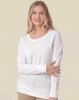 Široký kulatý výstřih, mírně vypasovaný střih, dvojité prošití na výstřihu, manžetách a v pase, 2x1 žebrování na výstřihu, manžetách a v pase, tkanina French Terry.