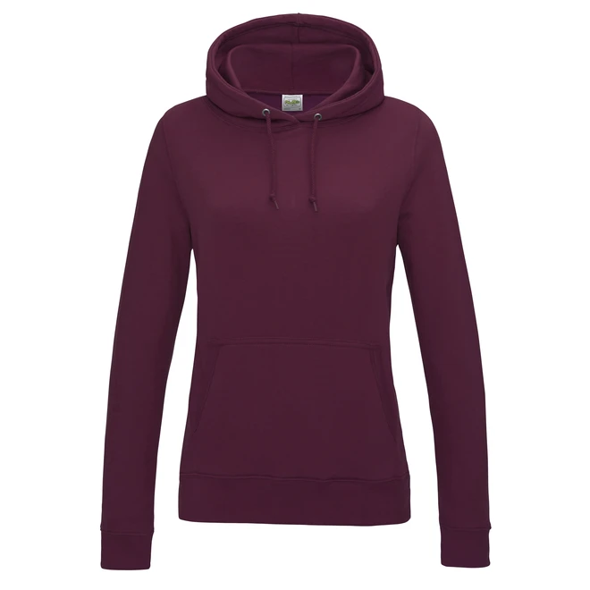 Dvojité prošití detailů, dámský střih, kapuce z dvojité vrstvy látky, šňůrky ve stejné barvě jako mikina, klokaní kapsa se skrytým vývodem na sluchátka, žebrované manžety a spodní lem, jednoduchá změna značky, ideální povrch pro potisk.